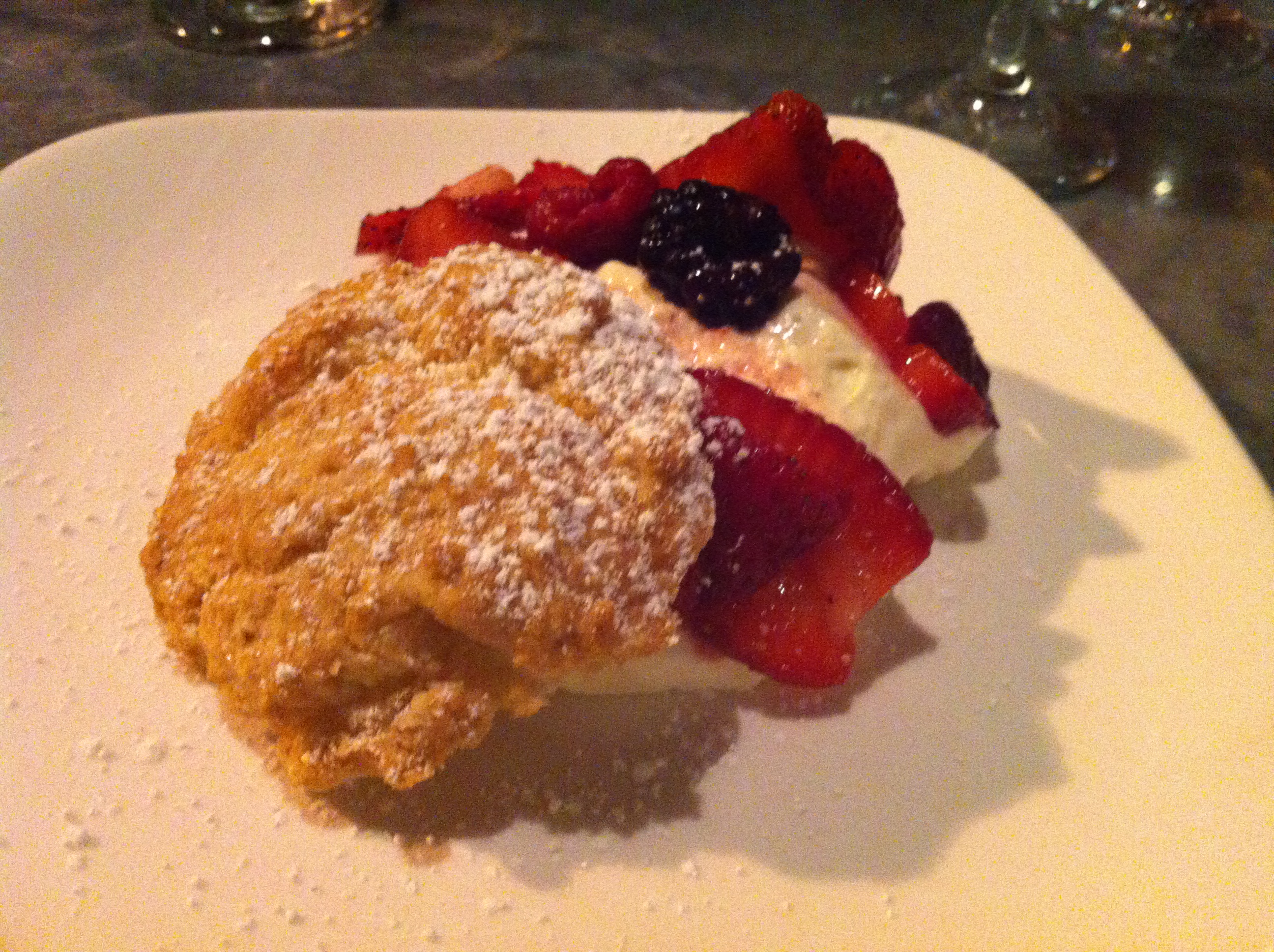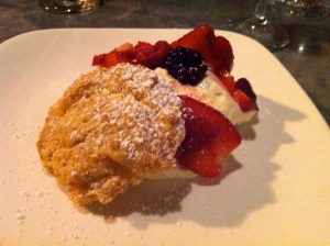 For dessert: Vanilla Panna Cotta with apricot cherry compote and lavender shortbread cookie. Okay, I already was full, but I finished this. The cookie was my favorite part – crunchy, sweet, and I absolutely loved the lavender. The compote was also fabulous.