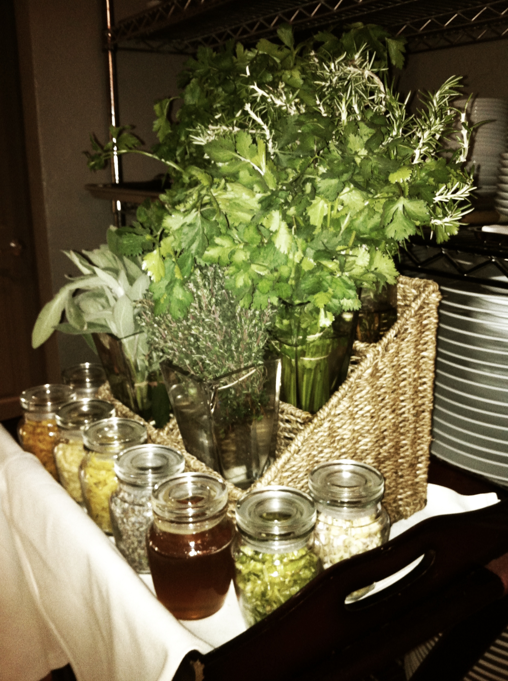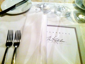 13 has a very cozy feel, with dark woods, a relatively low ceiling, and soft lighting. It is intimate, comfortable, private, yet not isolated. There is also an upstairs dining room that is a new acquisition for the restaurant. Situated off the main foyer of the hotel, it was a hair salon in its previous life. I’d guess they can probably seat about 40, 50 at the most. In order to reach it, you have to go back out the front door, up the stairs and into the hotel through a side stair way. This dining room is enclosed by glass and accessed by two heavy glass doors. On this night there were no available seats; I’m sure Dine Downtown brought out a lot of patrons. This is where we were seated. Immediately, I noticed the noise level. It was nearly impossible for me to hear the other people at our table and it took time to adjust my ears and brain enough to carry on a conversation. Also, the restroom is back out the glass doors, up the stairs, to the left down the hallway, and on the right. There is only one. However, you can also take the elevator back downstairs to use the restrooms in that dining room.