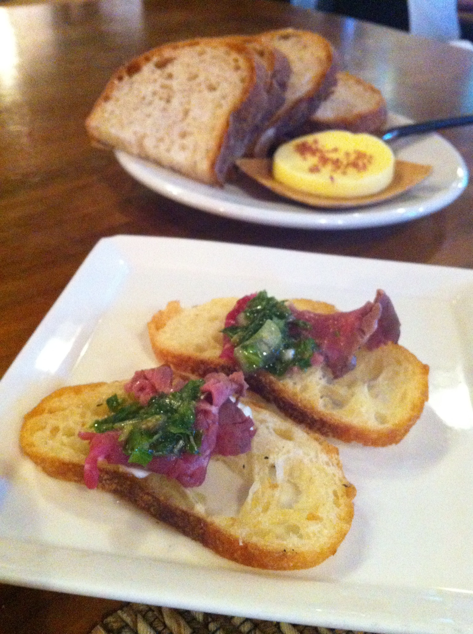 Dressed egg. This is basically a super delicious, gourmet version of your classic deviled egg. With capers and mayo, with a perfect spot of anchovy, this was divine. I am a huge fan of deviled eggs – one of the reasons I could never be vegan! These had a wonderful side of picked golden beets, which were a nice palate cleanser and a wonderful counterpoint to the egg “stuffing.” The anchovies really made this. The filling wasn’t too heavy, like some deviled eggs can be. It was relatively light – whipped, even – and expertly seasoned.